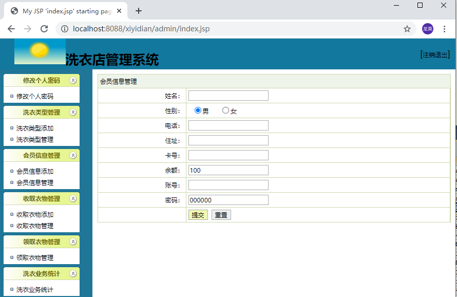 基于SSH框架实现的洗衣店管理系统,分管理员用户两种角色,衣服分类管理,收取管理,用户管理,统计管理等功能