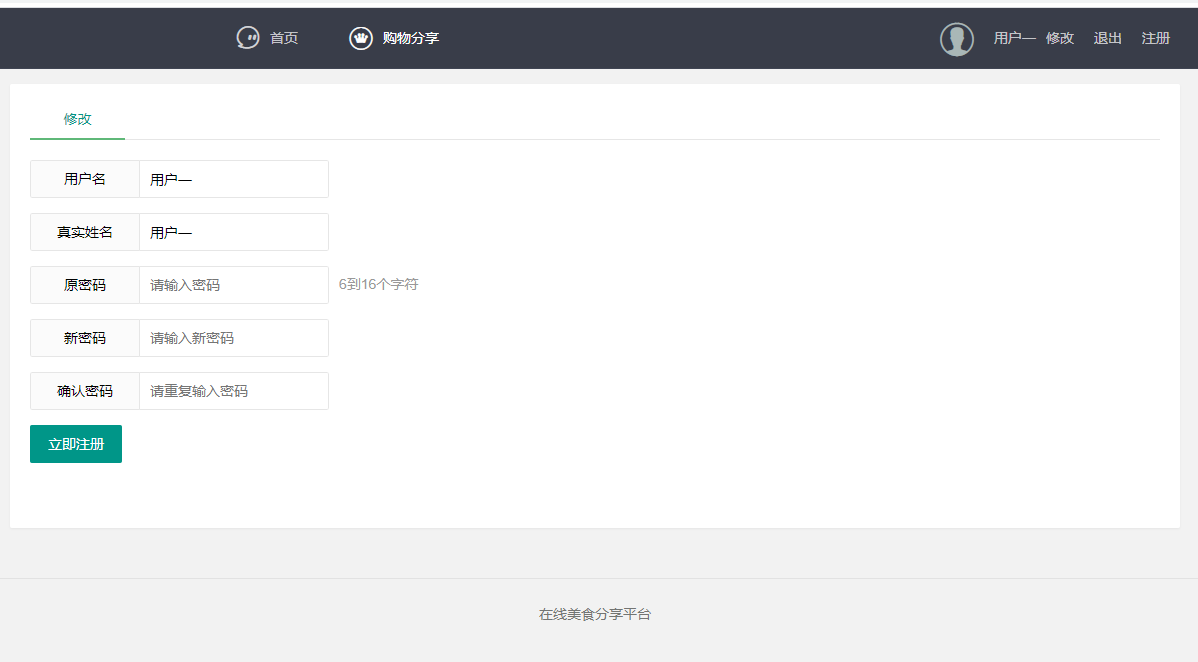 本项目为基于javaweb实现的购物美食分享平台,包含用户登录注册,美食分享展示,用户可以修改个人信息及发布分享,查看分享详情
