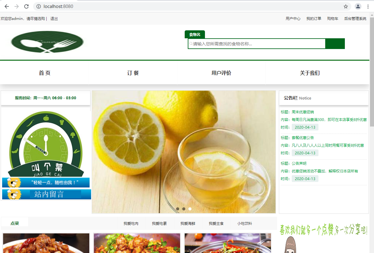 本项目为基于Springboot+mysql实现javaweb在线点餐系统,包含用户及管理员两种角色,用户可以在线登录注册及在线点餐...