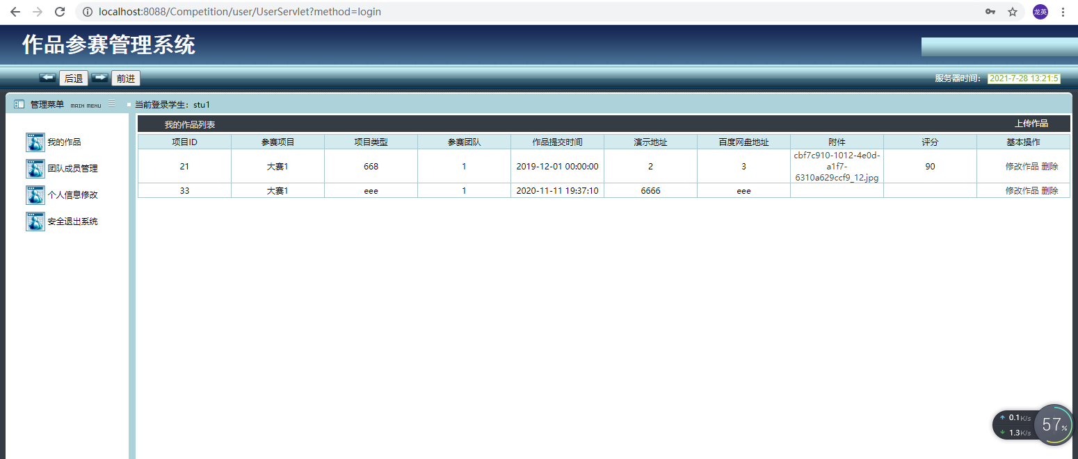本项目为基于javaweb+mysql实现的学生作品竞赛管理系统,主要功能为学生根据团队模式上传作品项目,老师可以评分,管理员可以管理评分教师及查看作品