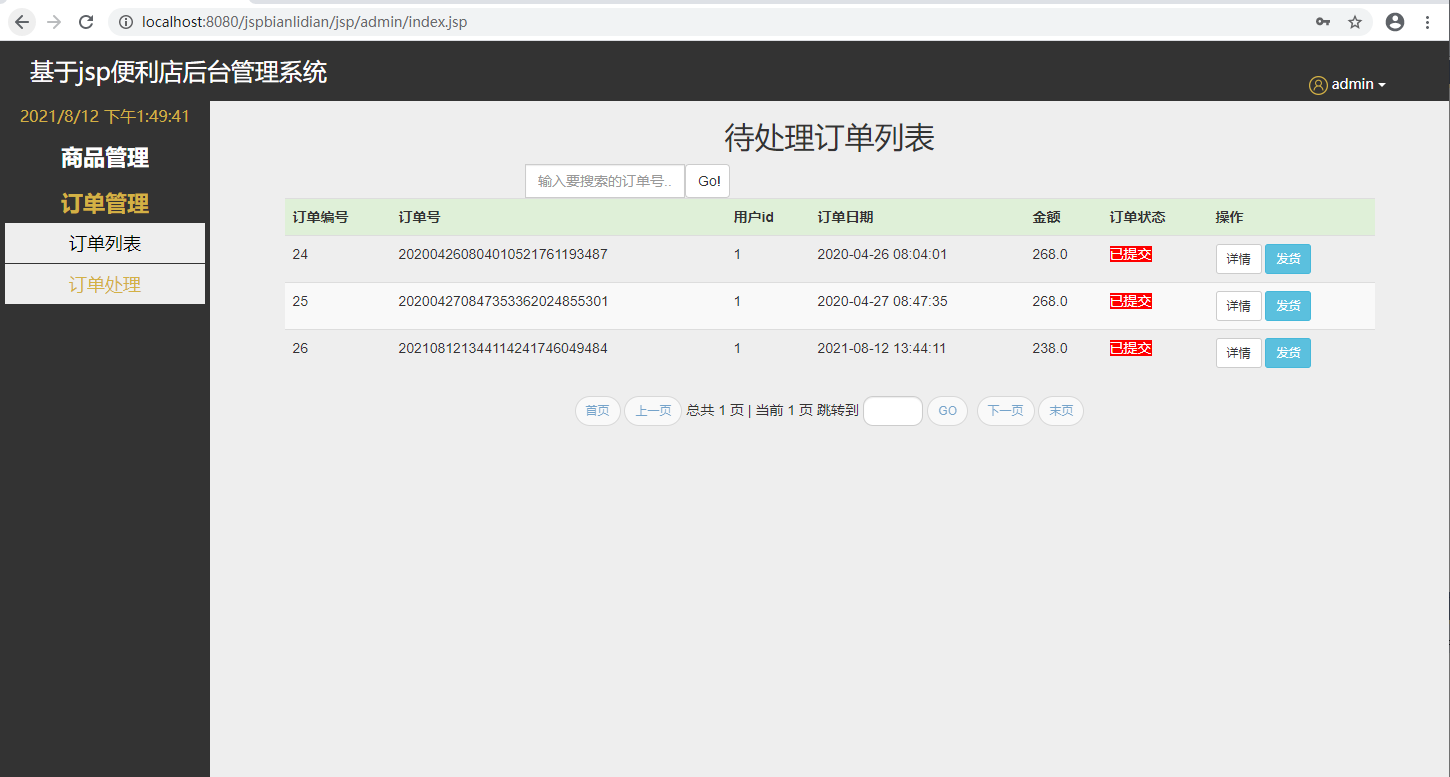本项目为基于javaweb实现的便利店管理系统,分为用户、供应商、管理员三种角色,用户可以登录注册并可以在线下单,查看个人历史订单情况及收货操作等,供应商管理商品分类及商品信息、订单管理,管理员可以进行用户管理、供应商管理等